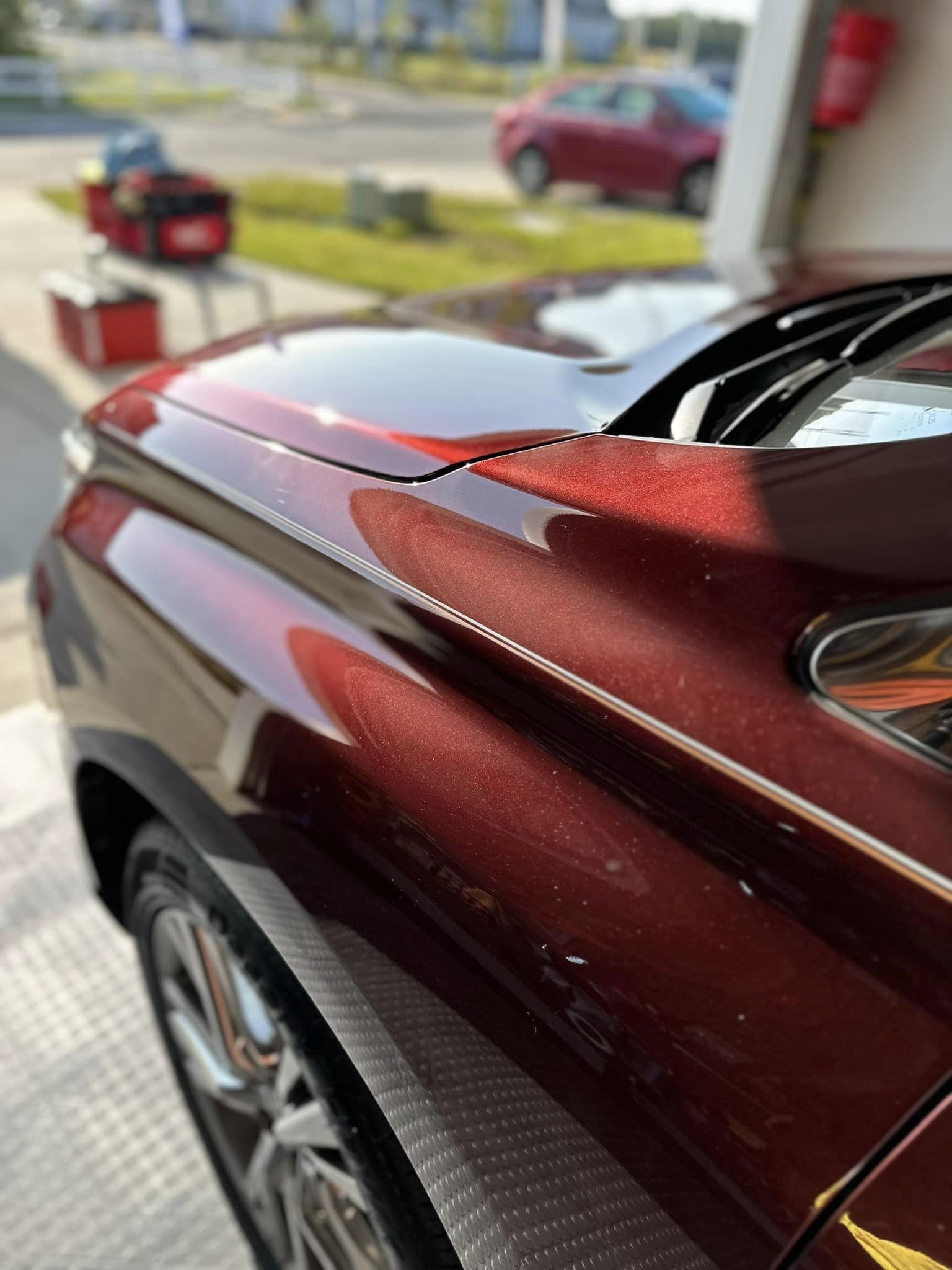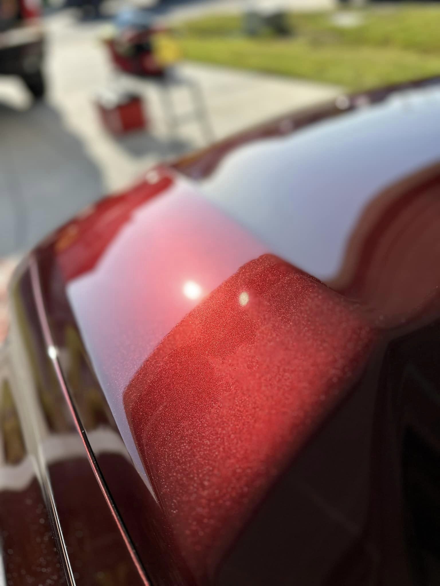 We've have seen a ton of cases of artillery fungus on the exterior of vehicles this year as well. These are those small black spots on paint that do not wash off. Most folks that call us have had mulch put down recently, so we are guessing that there is something going around right now in out door products that are being put down. In this situation, we encourage washing your vehicle as soon as you can, because these have a glue like root that adhered itself to the paint and is very difficult to remove. If left for more than a few weeks it will stain the paint requiring a polish which can be an expensive service.
